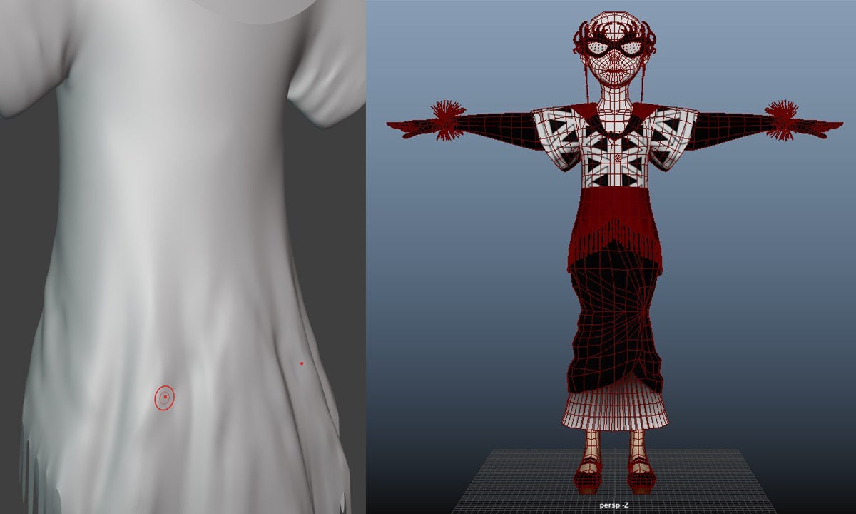 正面デッサンのみの場合であっても、横側や後ろ側のデザインについてのヒアリングを行うことで、お客様のイメージに沿った衣装の3DCG化に努めています。場合によってはラフスケッチ・写真のみでの制作も可能です。またアプリ等によるデータ容量の制限があっても、データ容量内でのしわの表現など可能な限りのクオリティアップに努め3DCG化を行っています。