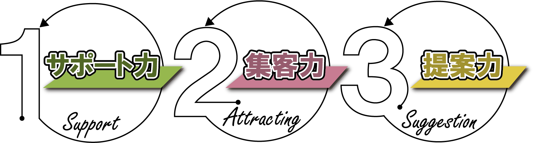 メックは【サポート力】【集客力】【提案力】3つの力でマッチングいたします!