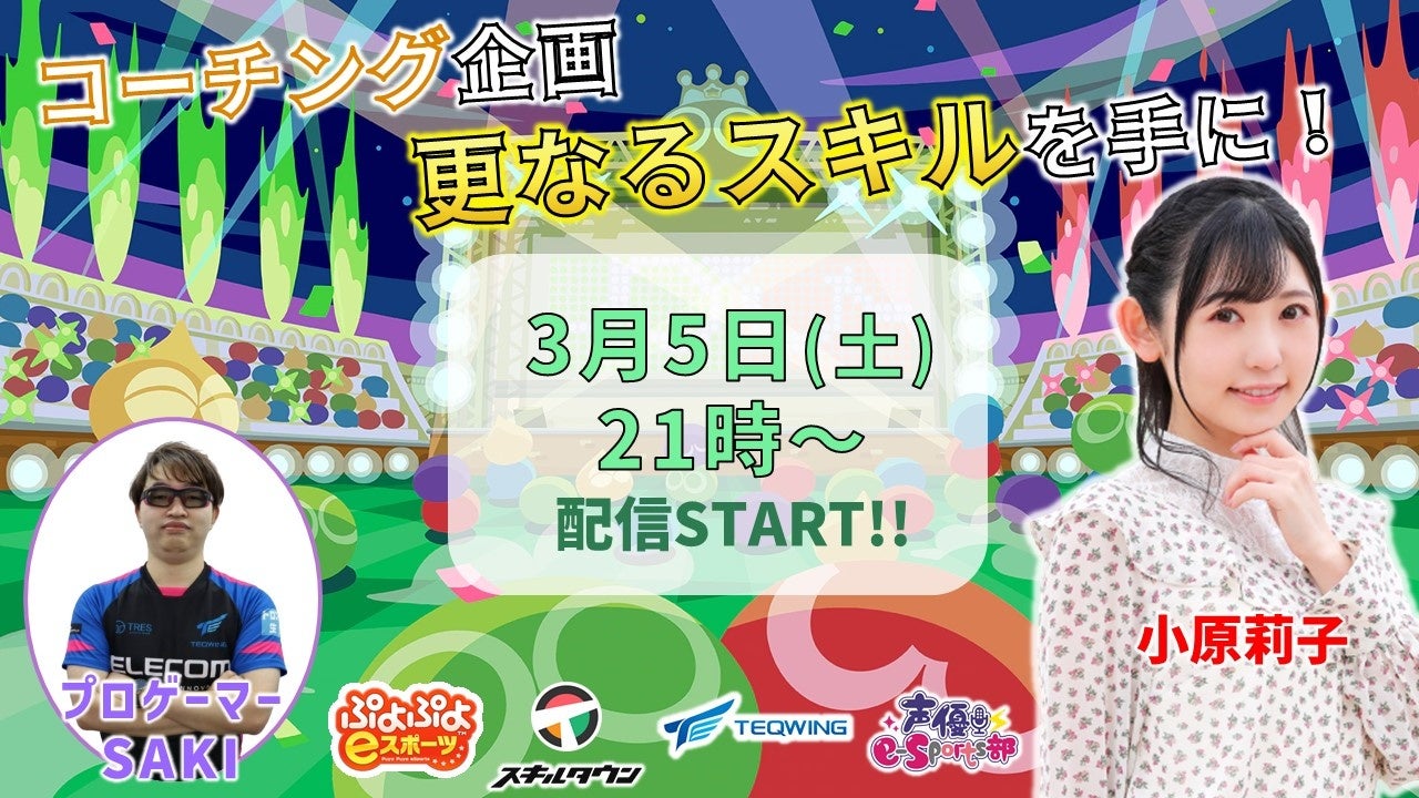 プロeスポーツチーム「TEQWING e-Sports」所属のSAKI選手が、声優e-Sports部の小原莉子とぷよぷよコーチング配信企画を実施