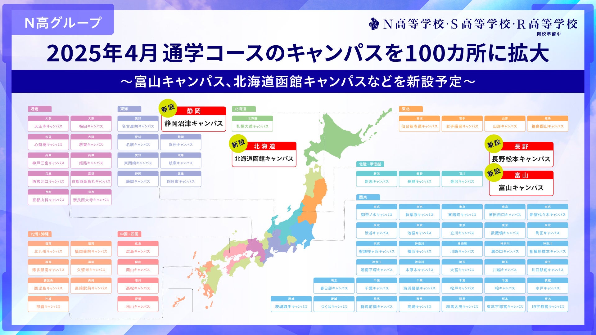 2025年4月、通学コースのキャンパスを富山市や函館市などに新設し全国100カ所に拡大