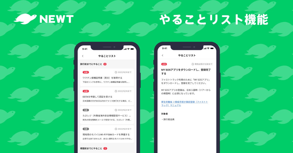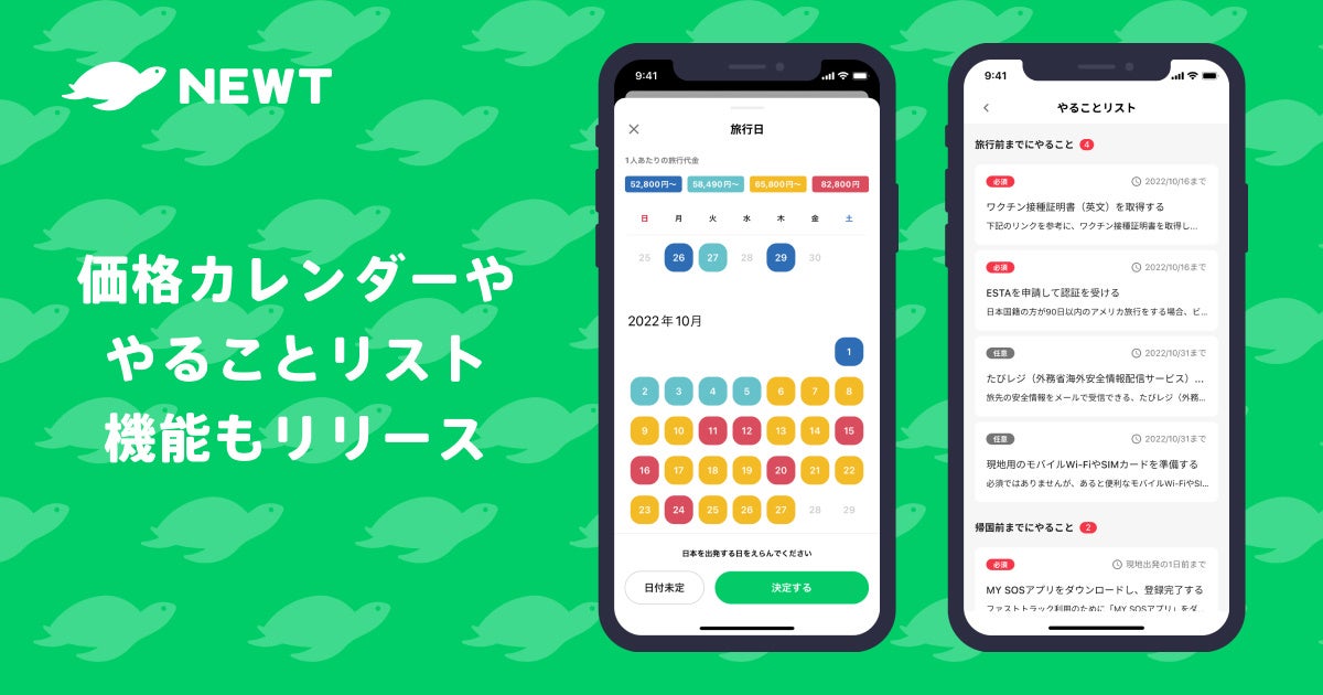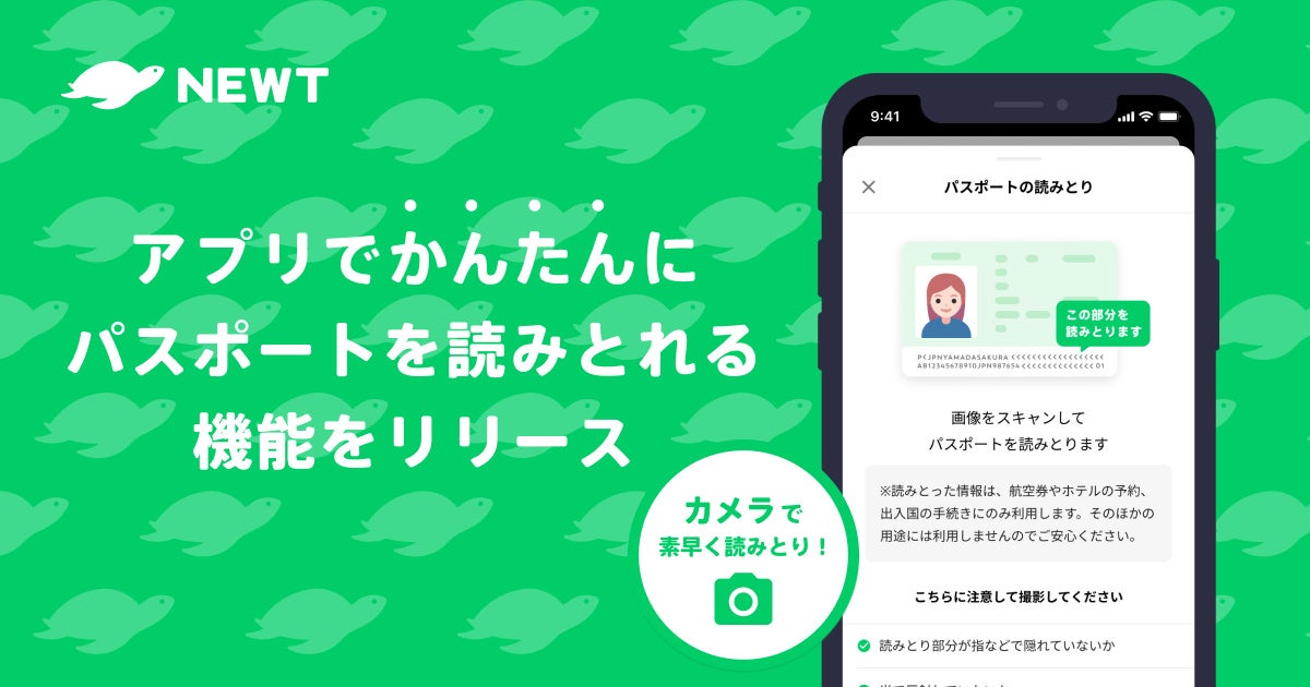 株式会社令和トラべル(本社:東京都渋谷区、代表取締役社長:篠塚 孝哉)が提供する海外旅行予約アプリ『NEWT(ニュート)』は、ディープラーニングを用いた画像解析による「パスポートスキャナー」をリリースしました。加えて、色別に旅行の代金が比較しやすい「価格カレンダー」や出発から帰国までのやることがわかる「やることリスト」も追加し機能を大幅バージョンアップ、より快適な”旅前の予約体験”を提供できるようになりました。