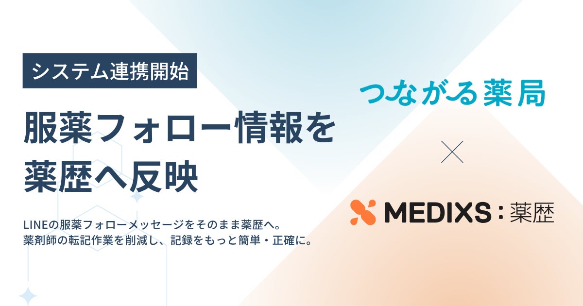 服薬フォローを提供する「つながる薬局」、薬剤師の負担軽減と迅速な患者情報の記録実現へ。クラウド型電子薬歴「MEDIXS 薬歴」との連携で最新の薬歴情報に基づいたきめ細やかな服薬指導を後押し