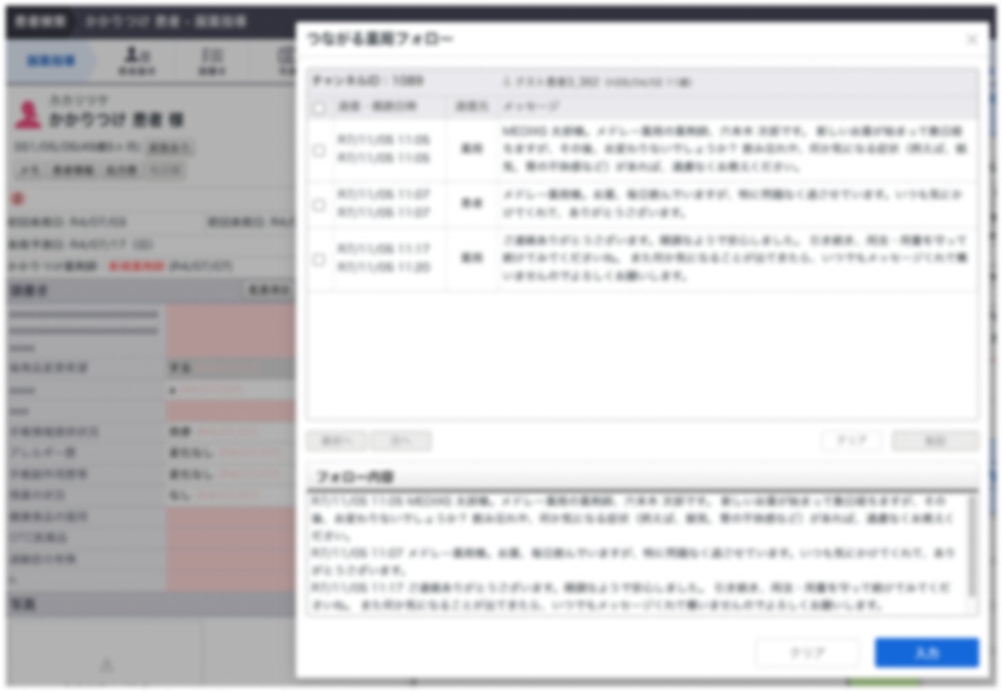 これにより、フォローメッセージの内容を薬歴に転記する手間を省き、薬剤師の薬歴作成業務の負担を軽減します。