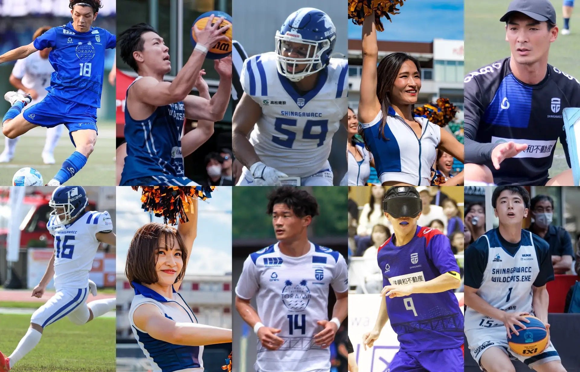 品川エリアを拠点とし、サッカー、3人制バスケットボール、チアリーダー、アメリカンフットボール、ブラインドサッカーの各チームを運営しています。クラブのテーマに【BRIDGES〜橋を架けよう〜】を掲げ、地域密着、そして仕事とスポーツの両立をモットーに、日々の活動に取り組んでいます。