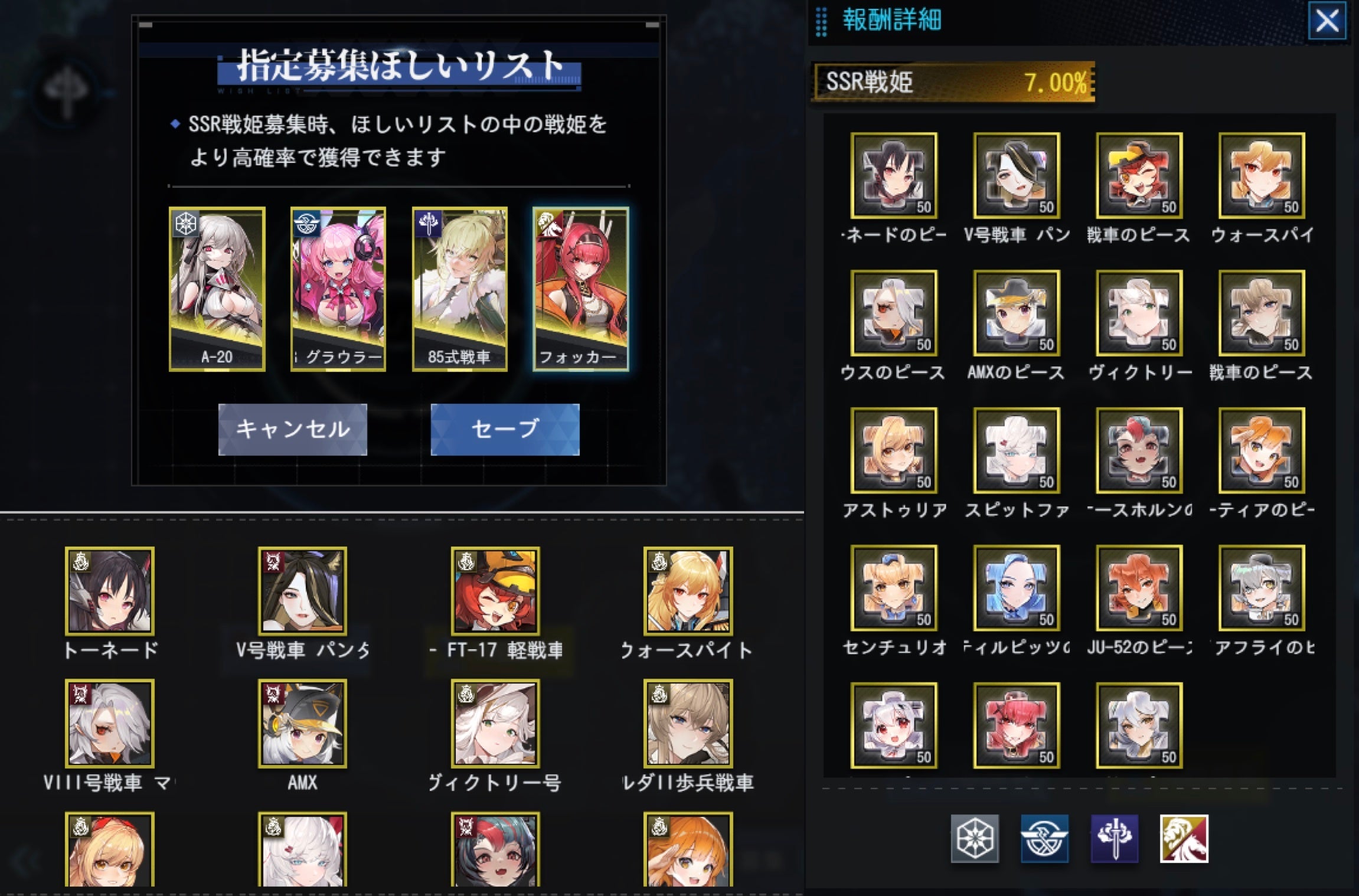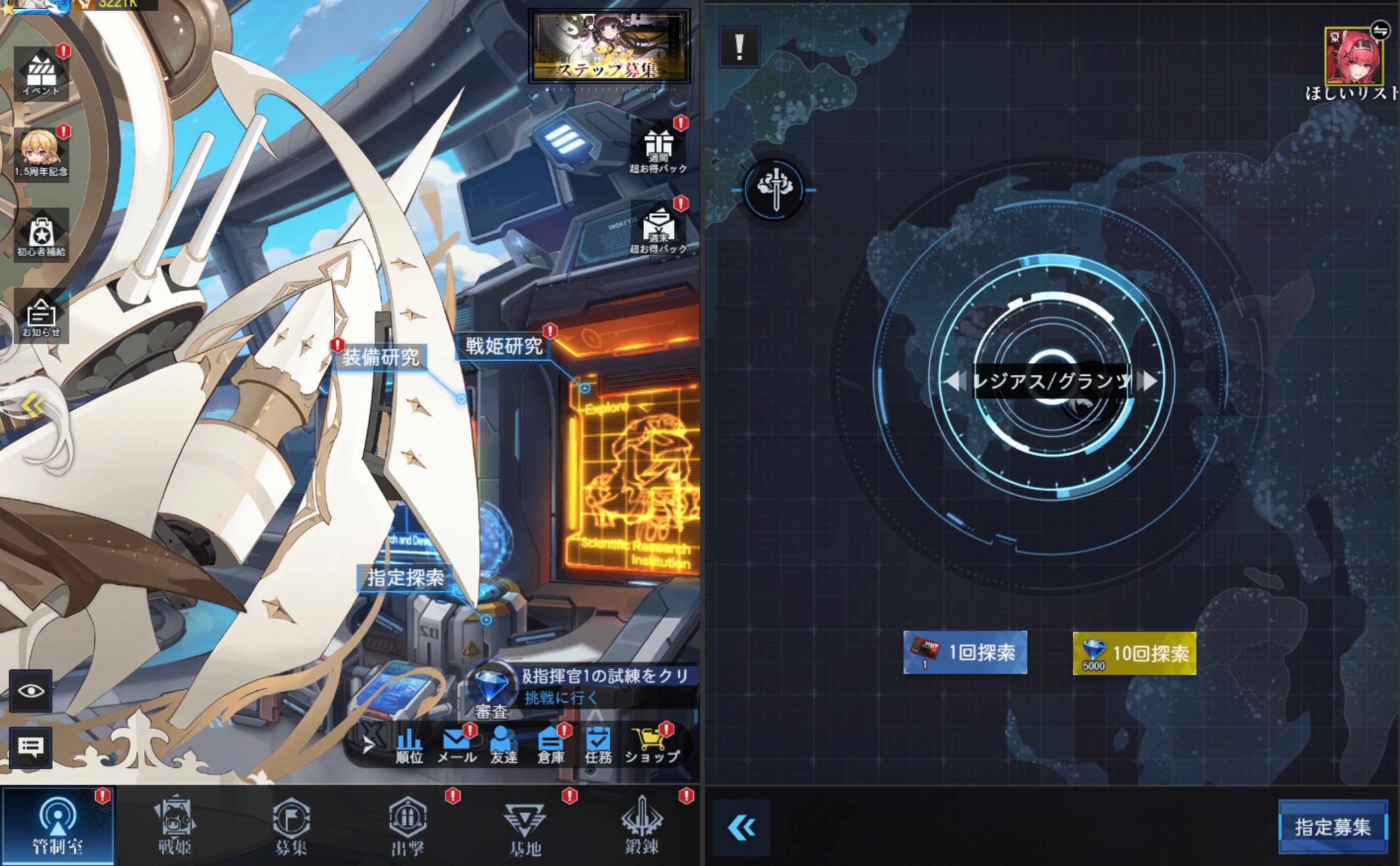 排出されるキャラクターの陣営を指定できるガチャ「指定募集」が新設されました!限定キャラも排出されるようになり、精鋭募集、限定募集より排出率が高くなります。こちらは指定募集券もしくはダイヤを消費することでガチャを引くことができる他、ほしいリストに設定された戦姫はより高い確率で獲得できます。