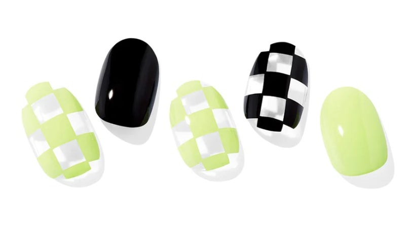シンプルなのに個性を感じるチェッカーボードネイル。 ブラックとライムの配色がメリハリをつくり、視線を釘付けにします。シンプルだけど、しっかり個性を主張。