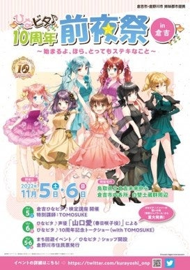 鳥取県倉吉(くらよし)市で、人気キャラクターバンドコンテンツ「ひなビタ♪」の10周年アニバーサリーイベントを2022年11月5日(土)6日(日)の2日間、開催いたします。
