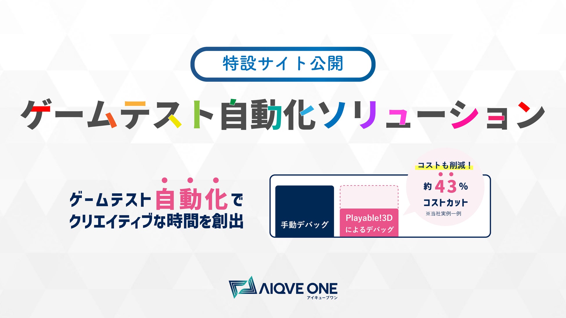 「エンタメ技術で未来を照らす」を理念に、ソフトウェア品質保証、エンタメ/AIソリューション開発、セキュリティサービスの事業を展開するAIQVE ONE(アイキューブワン)株式会社(本社:東京都千代田区、代表取締役社長:山崎 太郎、以下AIQVE ONE)は、AIおよび自動化技術を活用しゲームのテストを効率化する「ゲームテスト自動化ソリューション」の提供を2025年8月20日から開始しました。