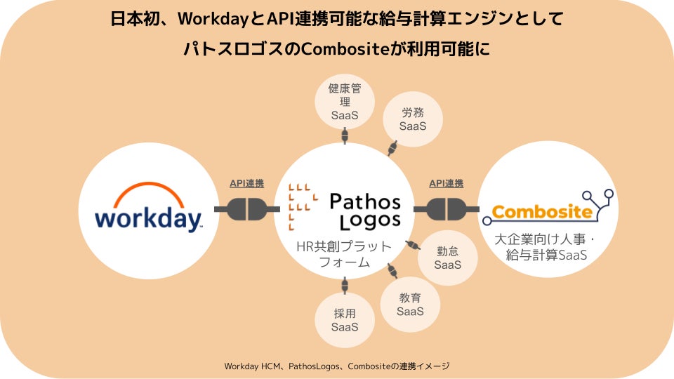 株式会社パトスロゴス(本社:東京都品川区、代表取締役CEO:牧野 正幸、以下「当社」)は、Workdayの「Workday ヒューマン キャピタル マネジメント(Workday HCM)」と当社の大企業向け人事・給与計算SaaS「Combosite人事給与」をAPI(※1)連携させる機能をリリースしたことをお知らせします。APIを用いてWorkday HCMと双方向の人事給与データ連携を実現したサービスは、日本初(※2)です。