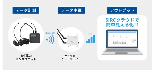 本サービスのご提供にあたっては、当社が出資した株式会社SIRC(2023年12月20日お知らせ済み)のIoT計測システムを活用します。このIoT計測システムは、計測機器の取付が安全かつ簡易で、精緻なエネルギー計測が可能であること、計測データをクラウド上でリアルタイムに参照できることなどの特徴を有しています。