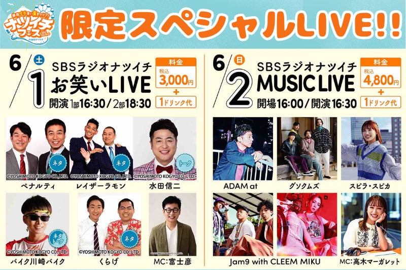 SBSラジオ(静岡放送)が6月1日(土)・2日(日)に、静岡市清水区のエスパルスドリームプラザで、「静岡イチ早い夏まつり!? ナツイチフェス」を行います。