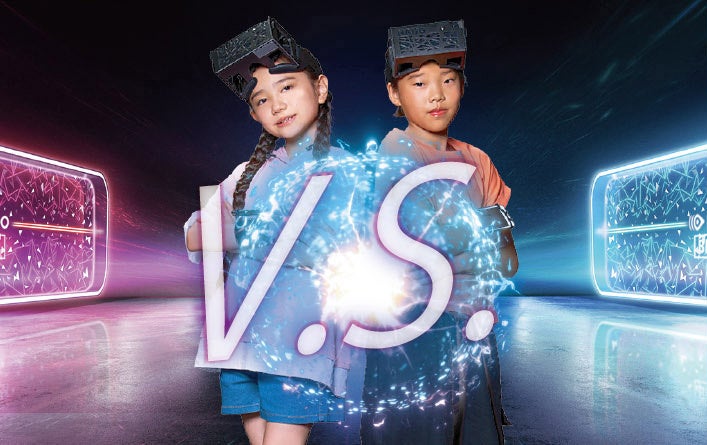 AR空間に放たれる「エナジーボール」と「シールド」を駆使し、チームで対戦する次世代ARスポーツです。戦略を立て、仲間と協力しながら勝利を目指す中で、考える力とチームワークを育みます。