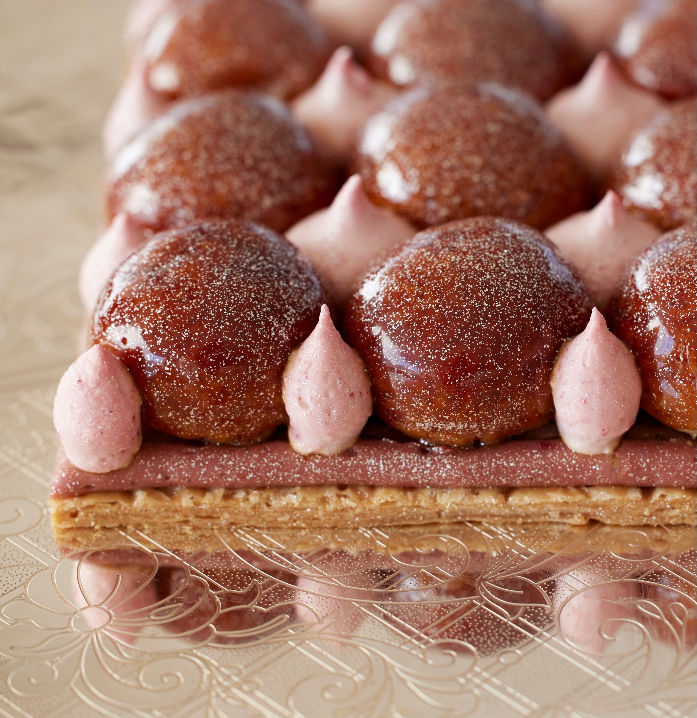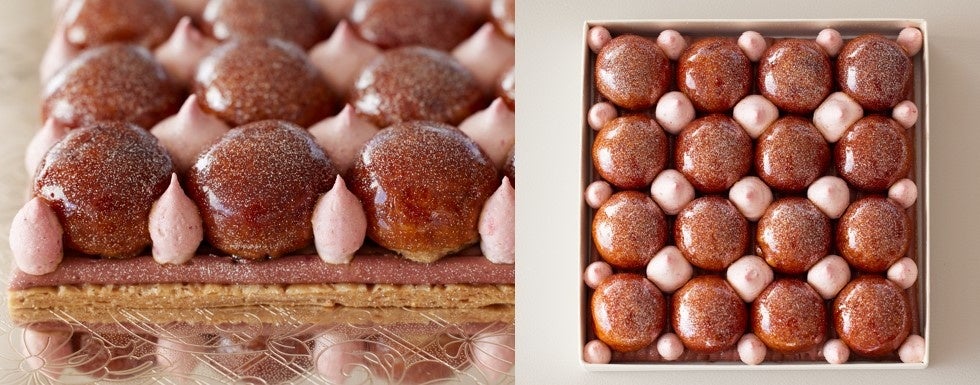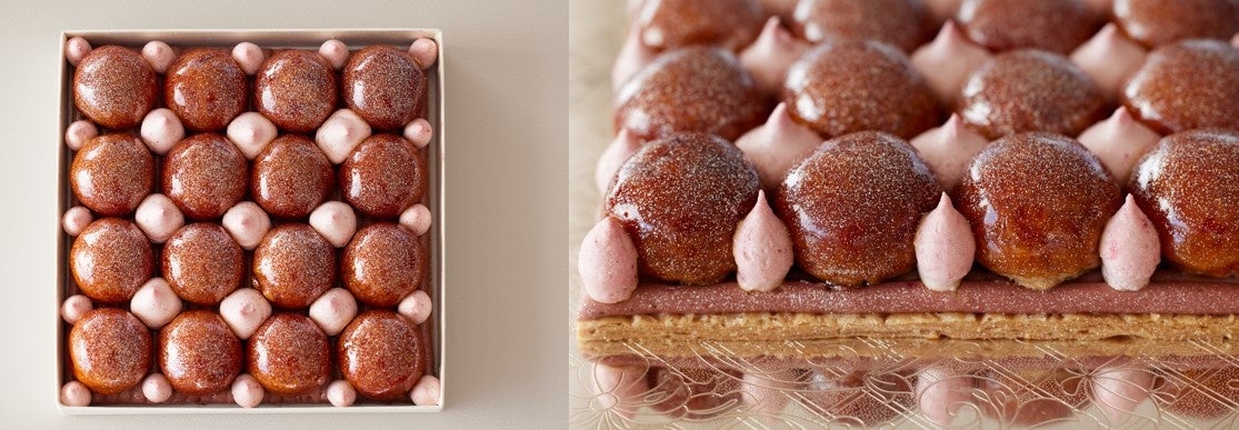 キャラメリゼされたシュー生地に、ストロベリークリームとハマナスのクレームディプロマット