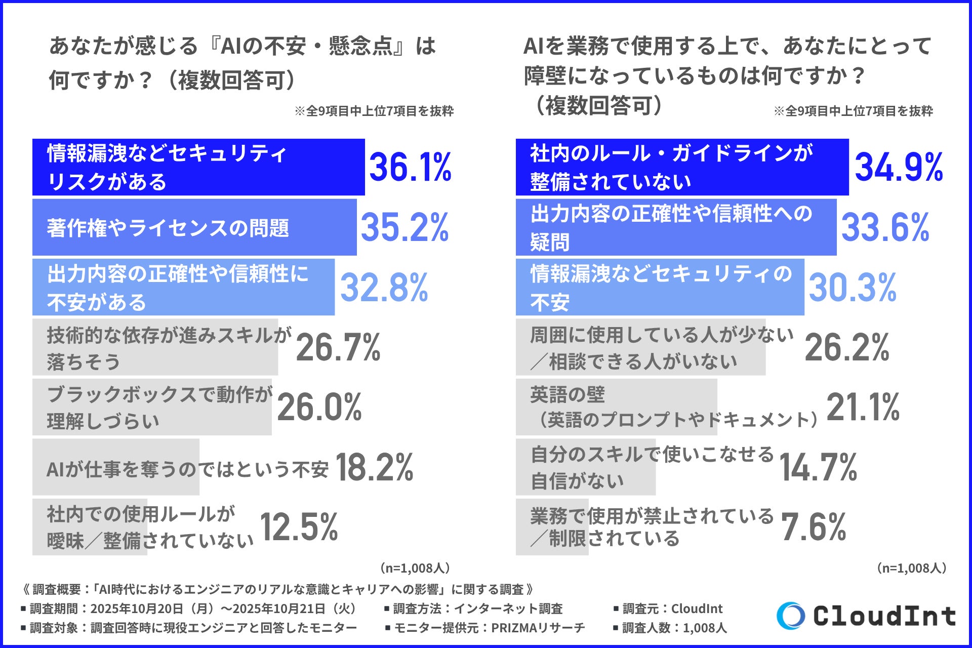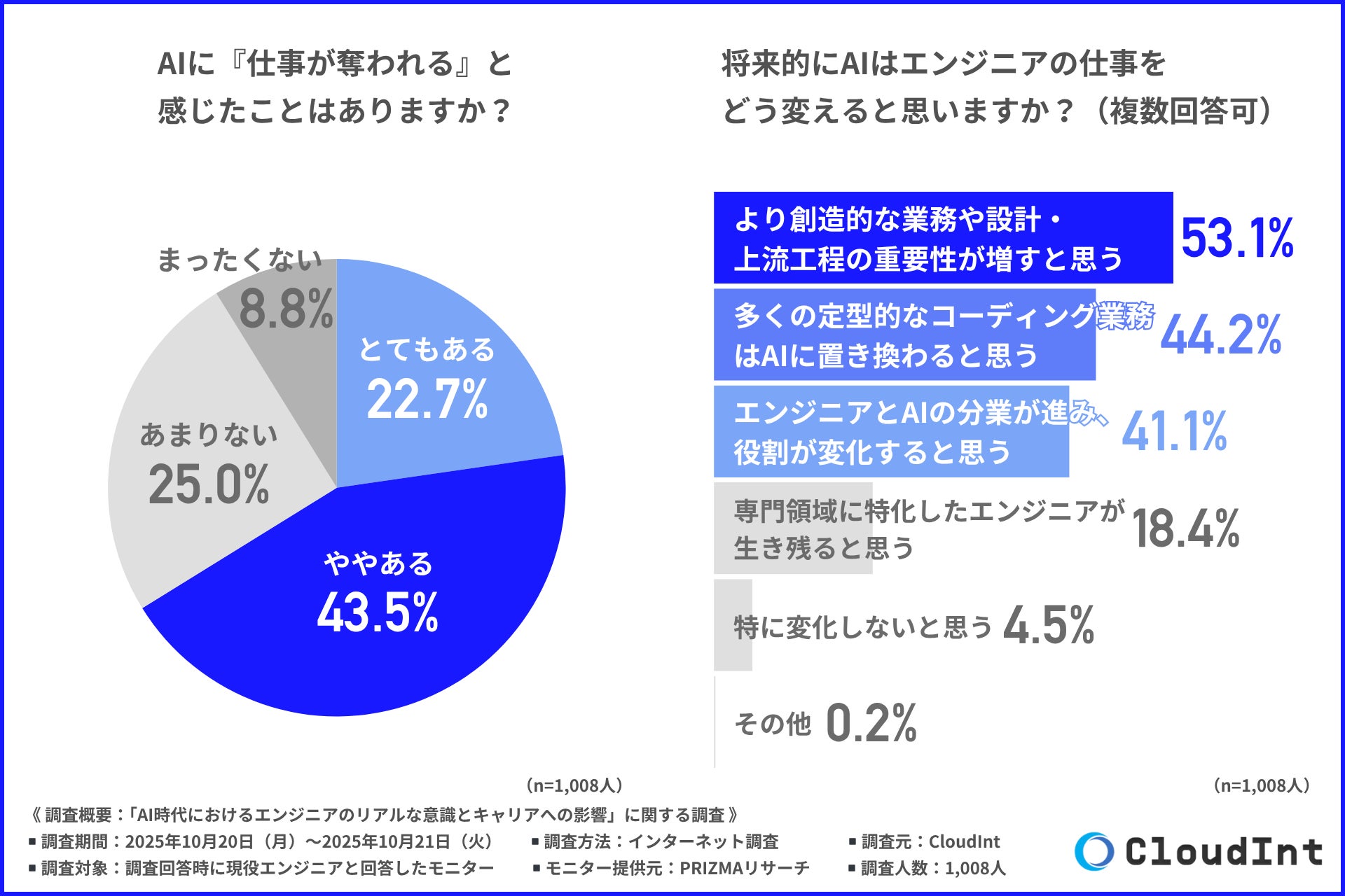 CloudInt(所在地:東京都港区)は、現役エンジニアを対象に、「AI時代におけるエンジニアのリアルな意識とキャリアへの影響」に関する調査を行いました。