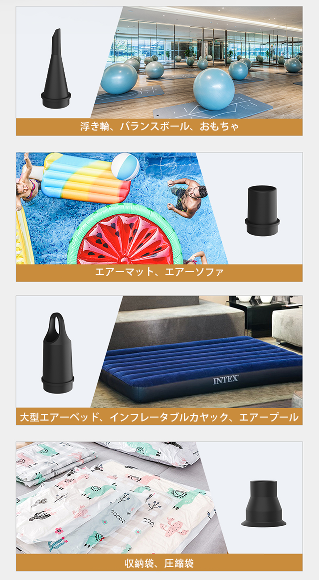 空気入れのほか、「AP8」は空気抜きの性能も非常に強いです。衣服や布団の収納、出勤荷物所要空間の縮め、食べ物の賞味期限の延長……「AP8」の空気抜き機能を使えば、簡単に以上の難問を解決できます。