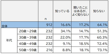 全体の認知度は低いものの、若者の認知は3割と前より増加