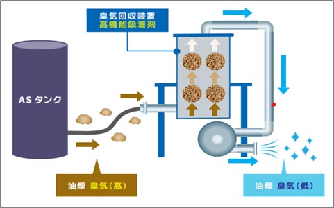 そしてこのたび、さらなる環境性能の向上を目指し、Asタンク油煙*2臭気回収装置「アシュボ」(以下、「本装置」)を開発しました。