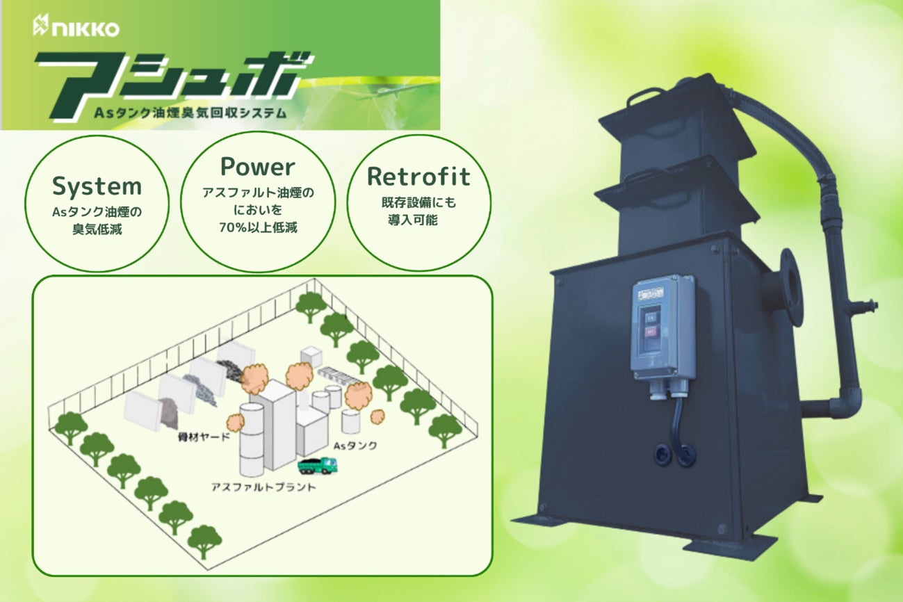 日工株式会社(本社:兵庫県明⽯市、代表取締役社⻑:辻 勝 証券コード:6306以下、「日工」)は、このたびAs(アスファルト)タンク*¹油煙由来の臭気に特化した脱臭装置を開発いたしました。