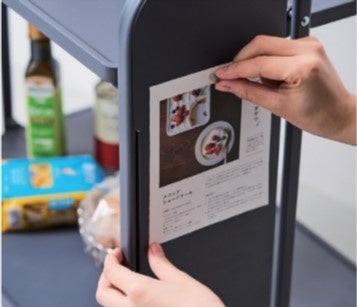また、取り外し可能な「サイドプレート」が2枚付いており、プレートを取り付ければ磁石を使ってレシピや予定表などを貼り付けることができます。