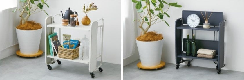 折り畳み可能でシンプルなデザインが魅力の、多目的に使用できるワゴン「フォールディング トローリー