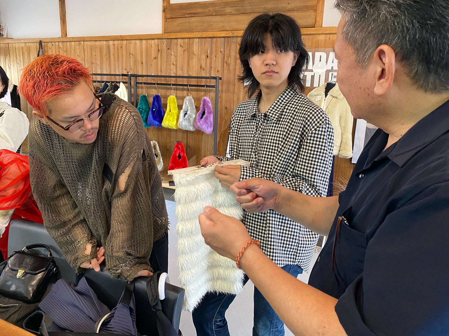 スーパーデザイナー学科の学生が、バイヤー向けに商品を披露