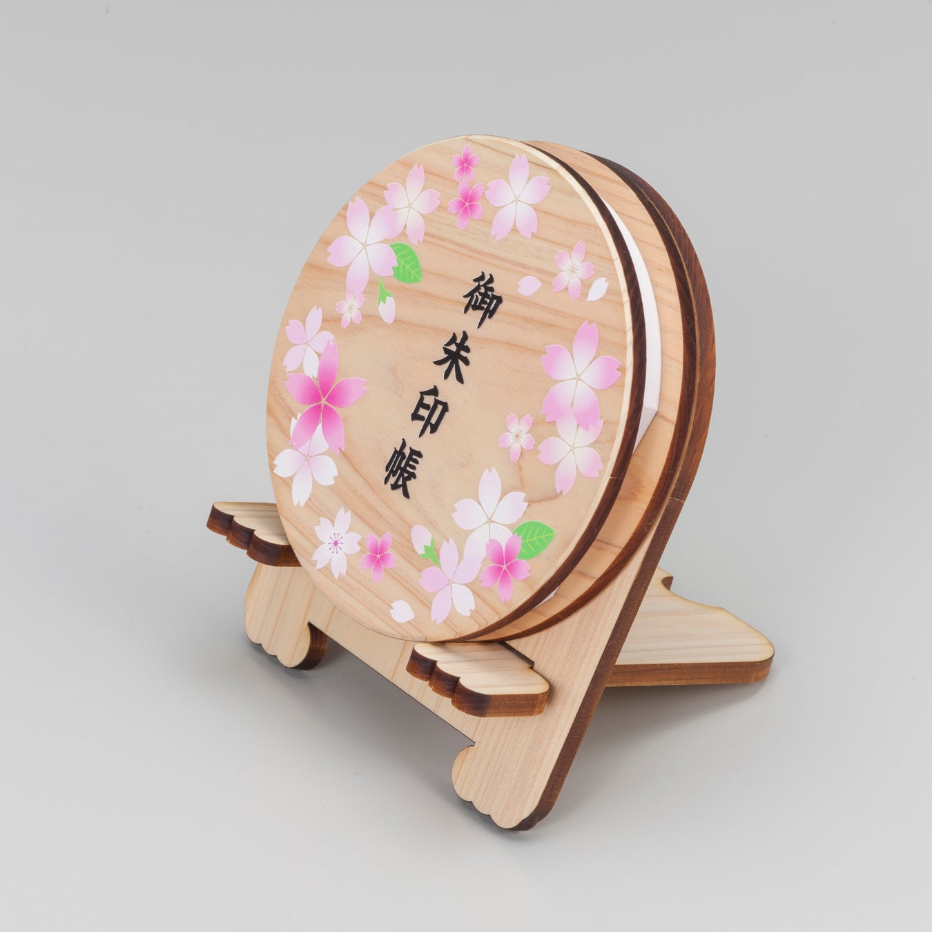 古来より「円満」や「良縁」を象徴する丸い形の御朱印帳で、さくらといっしょに平和な参拝のひとときを穏やかに過ごしてほしいという願いを込めました。発売を記念して専用スタンドをおまけでご用意いたしました。