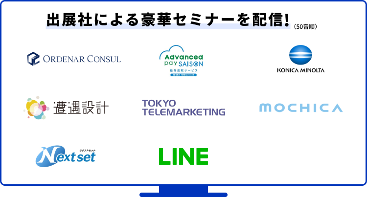 株式会社overflow/オルデナール・コンサルティング合同会社/株式会社クレディセゾン/コニカミノルタジャパン株式会社/株式会社遭遇設計/株式会社東京テレマーケティング/株式会社ネオキャリア/株式会社ネクストセット/ユニアックス株式会社/LINE株式会社