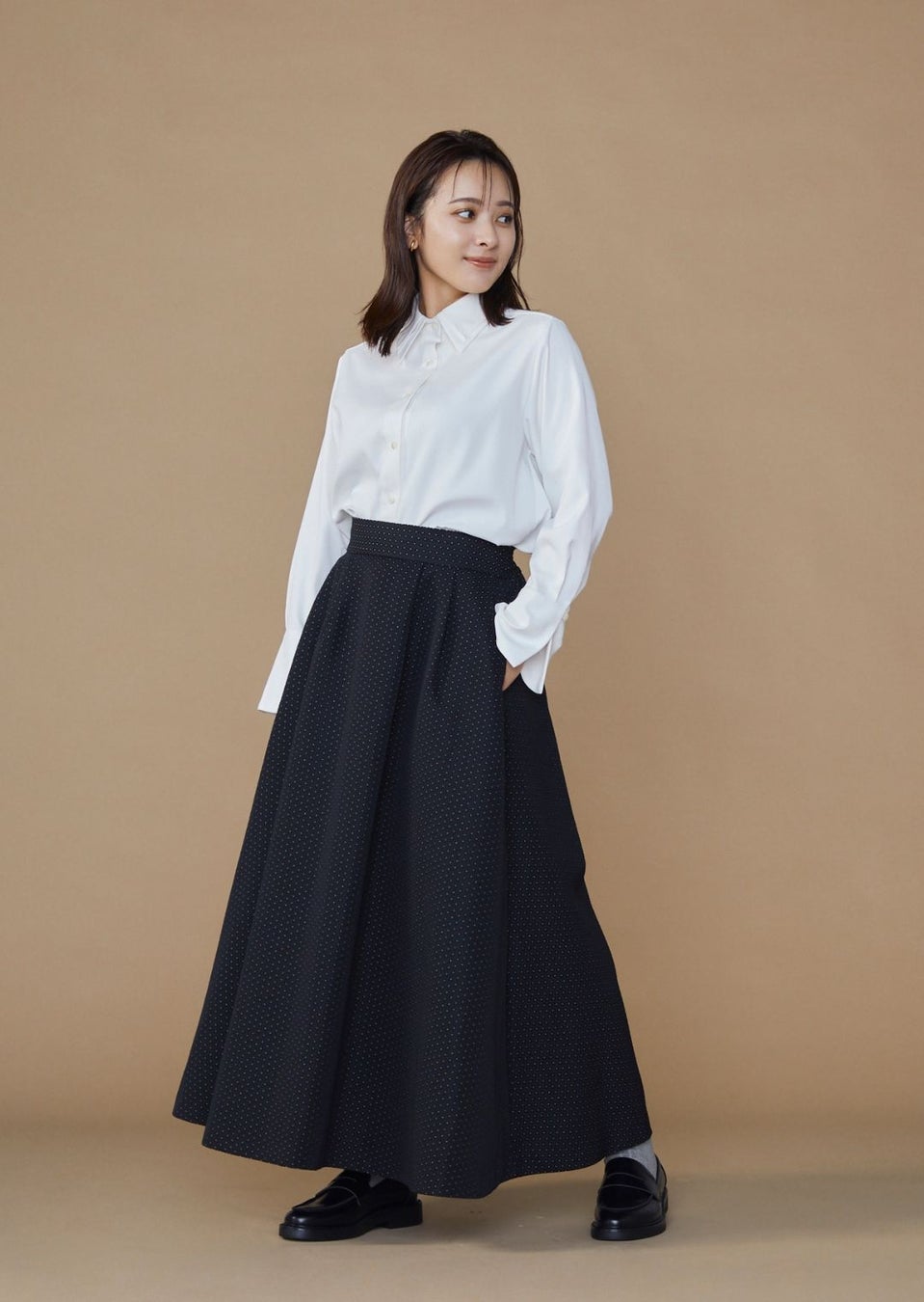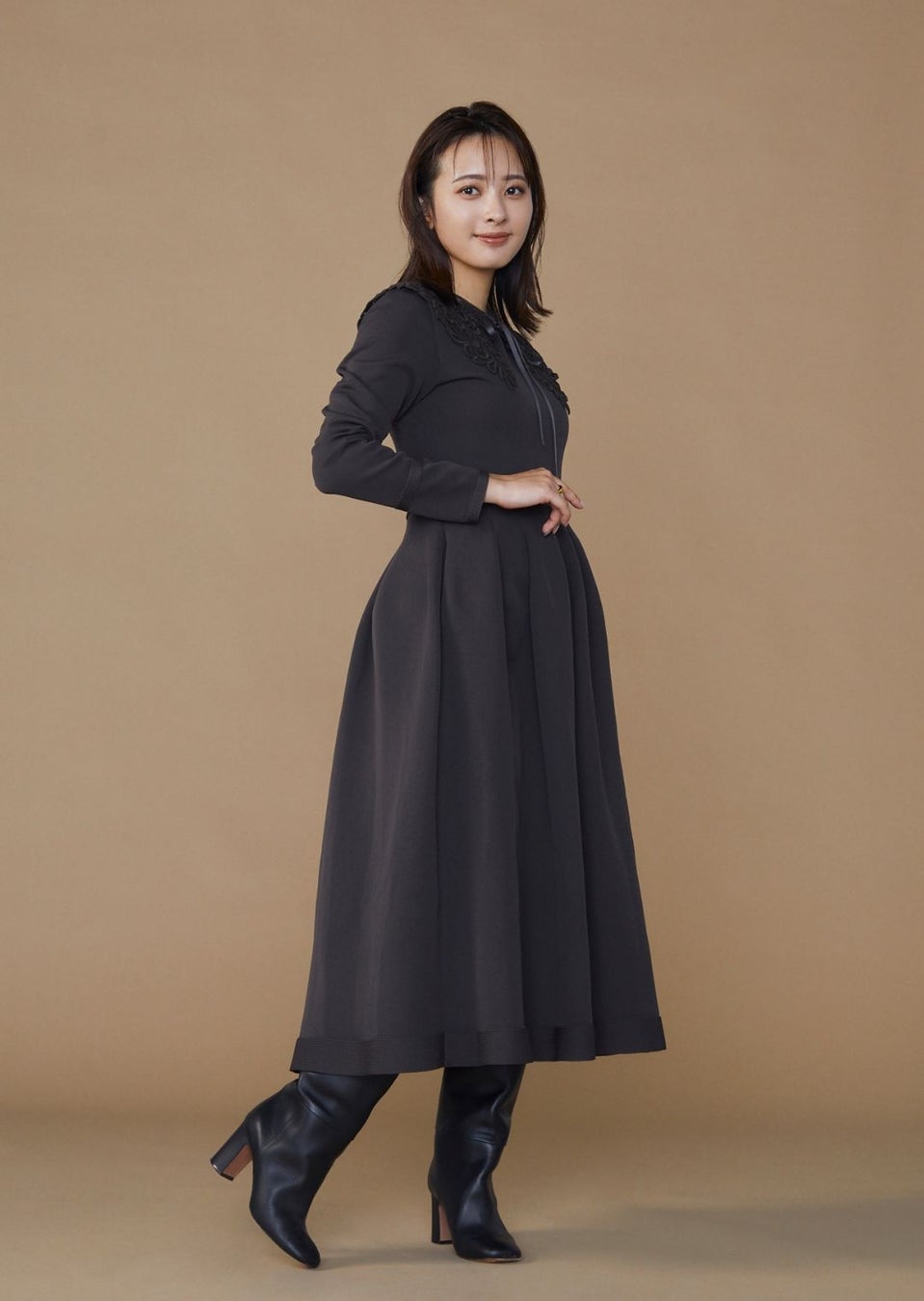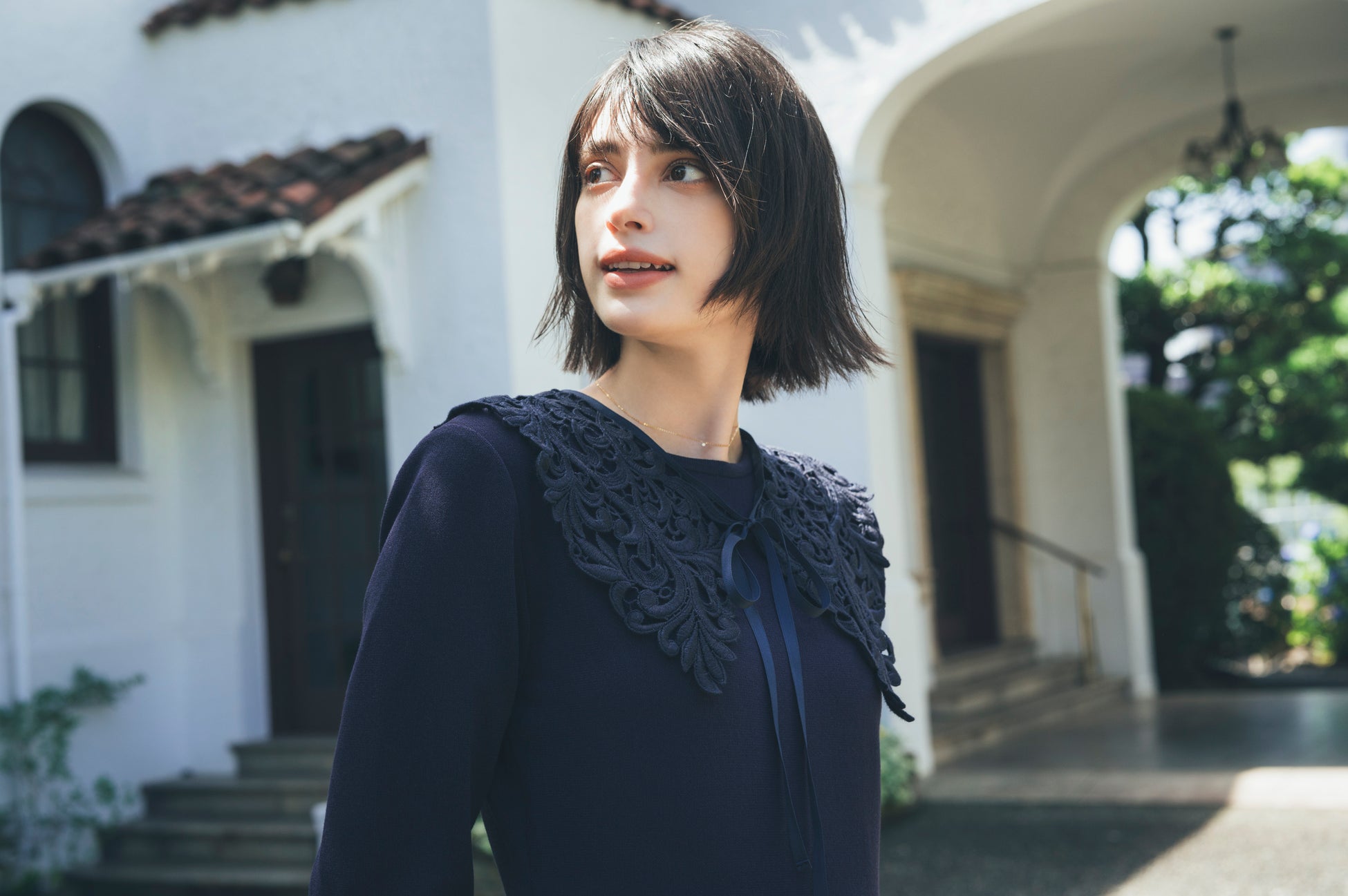 「馴染むけど、埋もれない」コーディネートを作れます。学校行事・習い事の送り迎えはもちろん、伸縮性があるのでベビーカーを押したり、運転をしたりするシーンでも心地よくお召しいただけます。機能性インナーを仕込みやすいように、襟はラウンド型を採用。別売りのレース襟・Christina lace collarを合わせれば甘さを楽しむスタイリングのできあがり。
