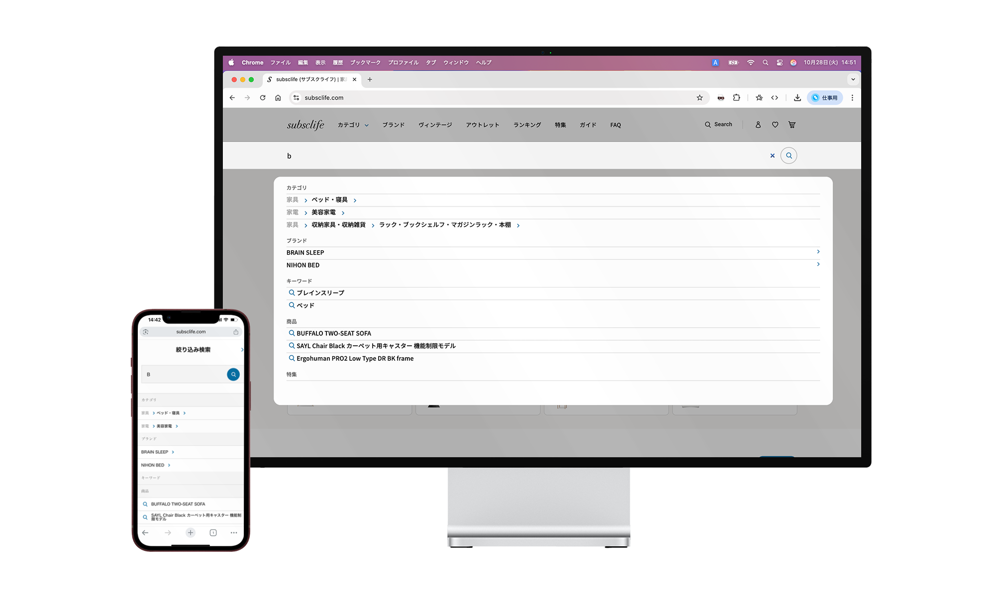 ECサイトの売上向上と顧客体験の最適化を支援する、次世代AIサイト内検索エンジン「ユニサーチ」を開発・運用するユニバーサルナレッジ株式会社(本社:東京都渋谷区)は、2025年10月28日より、株式会社ソーシャルインテリア(本社:東京都港区)が運営する家具・家電のセレクト型オンラインストア『サブスクライフ』に、当社のサイト内検索「ユニサーチ」が導入されたことをお知らせいたします。