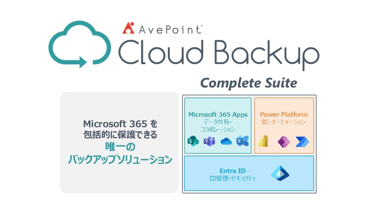 AvePointは20年以上にわたりMicrosoft製品のデータ管理ツールを提供してきた知見をもとに、Microsoft 365の包括的バックアップツール『Cloud Backup Complete Suite』をリリースします。