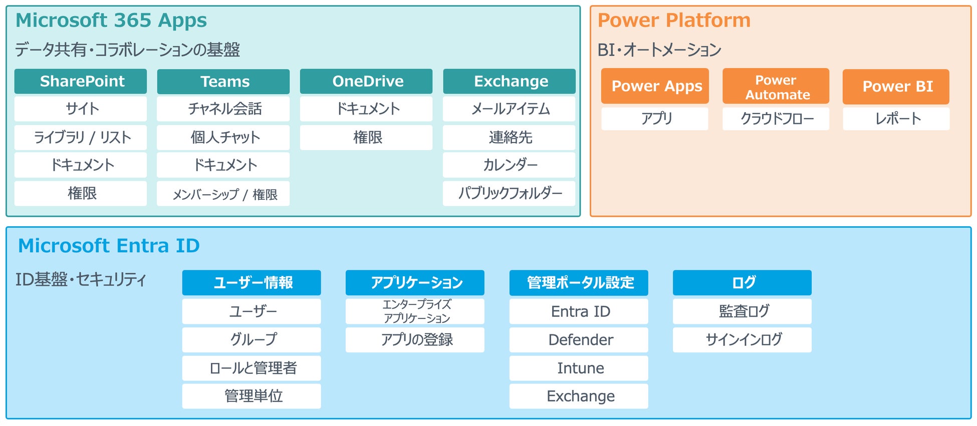 ・SharePoint Online、Teams、OneDrive、Exchange Online、Viva Engage、Power Apps、Power Automate、Power BI、Entra ID、Entra ID管理ポータル設定、監査ログ、サインインログのバックアップに対応