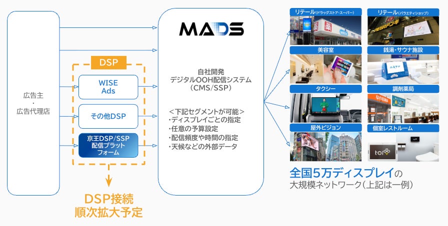 本接続により、京王DSP/SSP配信プラットフォーム経由で、MADSネットワーク内の各ロケーションへ広告配信が可能となります。これによりMADSは、各ロケーションオーナーに対する広告マネタイズ支援をさらに拡大し、運用負荷を抑えながら収益機会の最大化に寄与します。京王エージェンシーは、従来の交通メディア・屋外メディアに加え、リテールメディアをはじめとした新たな媒体への配信が可能となり、ターゲットの生活導線に沿った、シームレスな広告接触が可能になります。
