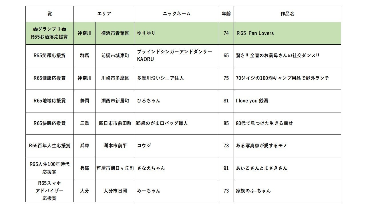 ※グランプリ及び「R65応援賞」8作品は、次頁の受賞者リストをご参考ください。