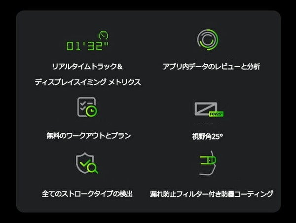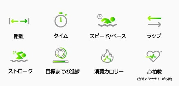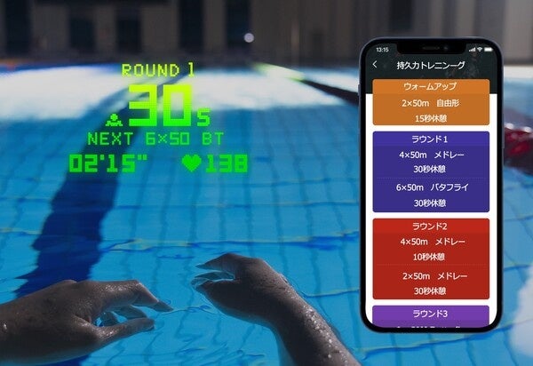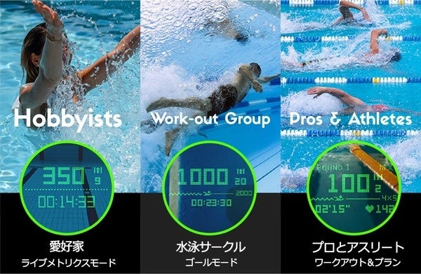 泳ぎながら距離やタイム、ラップ、目標までの進捗までも確認できるARディスプレイ付きスマートゴーグル! スマホアプリと連動してデータを保存、仲間と競ったり、コーチとトレーニング内容を共有できます。