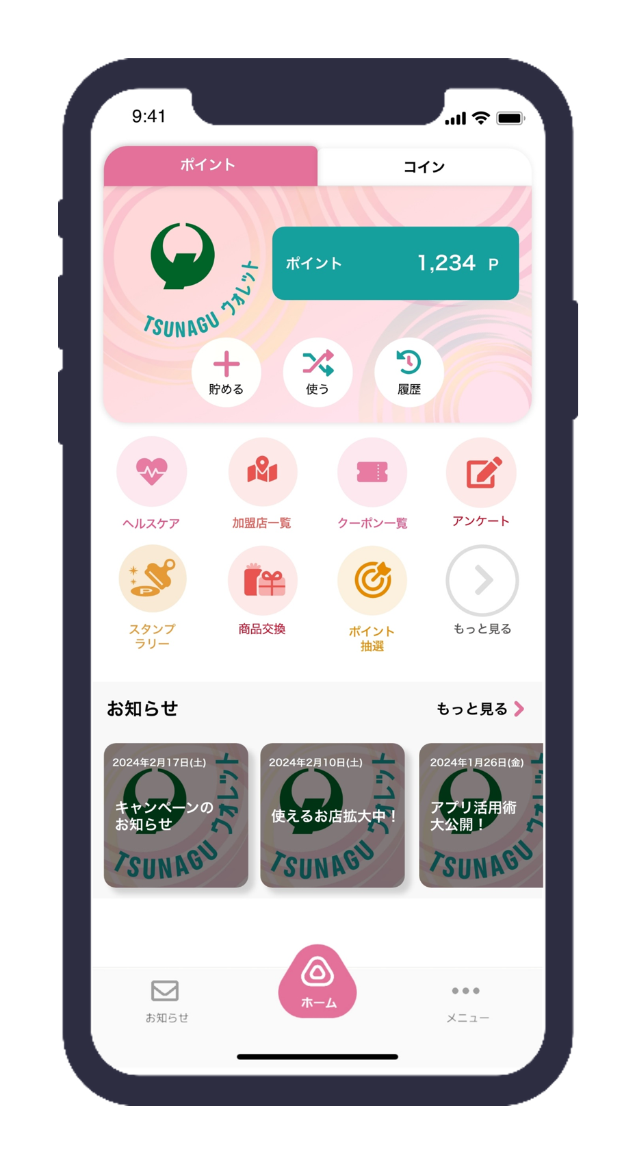 さくら祭りやTSUNAGU CITYで貯めたNAGUポイントを1ポイント1円相当として加盟店利用できます。 |