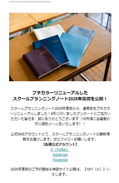 さらに、教師用手帳の元祖・スクールプランニングノート2025年度版もご予約を開始いたしました。クーポンはオンラインストアで即日ご利用できます。ぜひこの機会にお得にスクールプランニングノートをご購入ください。
