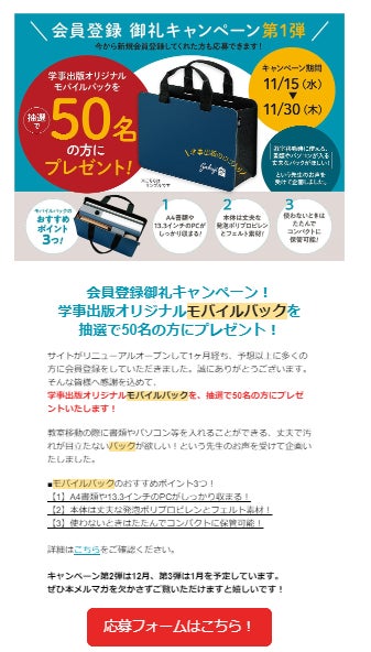 期間内に学事出版のウェブサイトに無料会員登録をしていただいた方に、