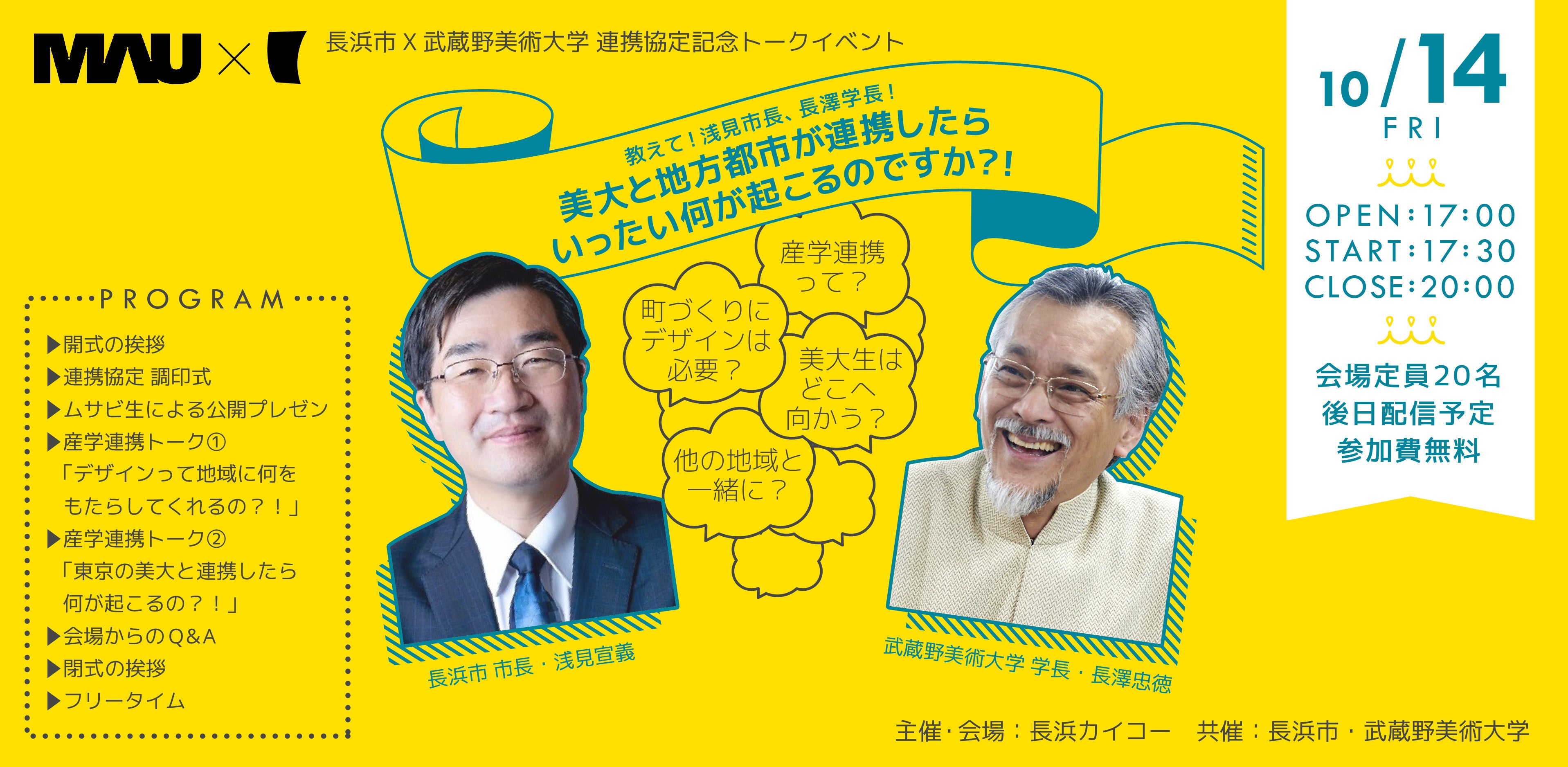 【武蔵野美術大学】滋賀県長浜市にて長浜市との連携協定記念トークイベントを開催!(参加者募集)