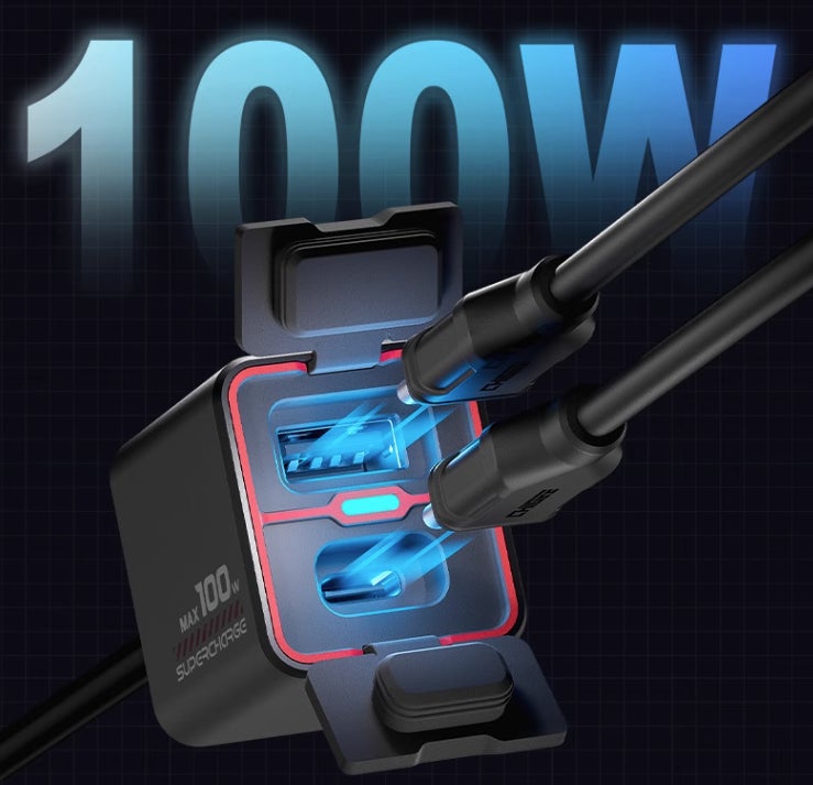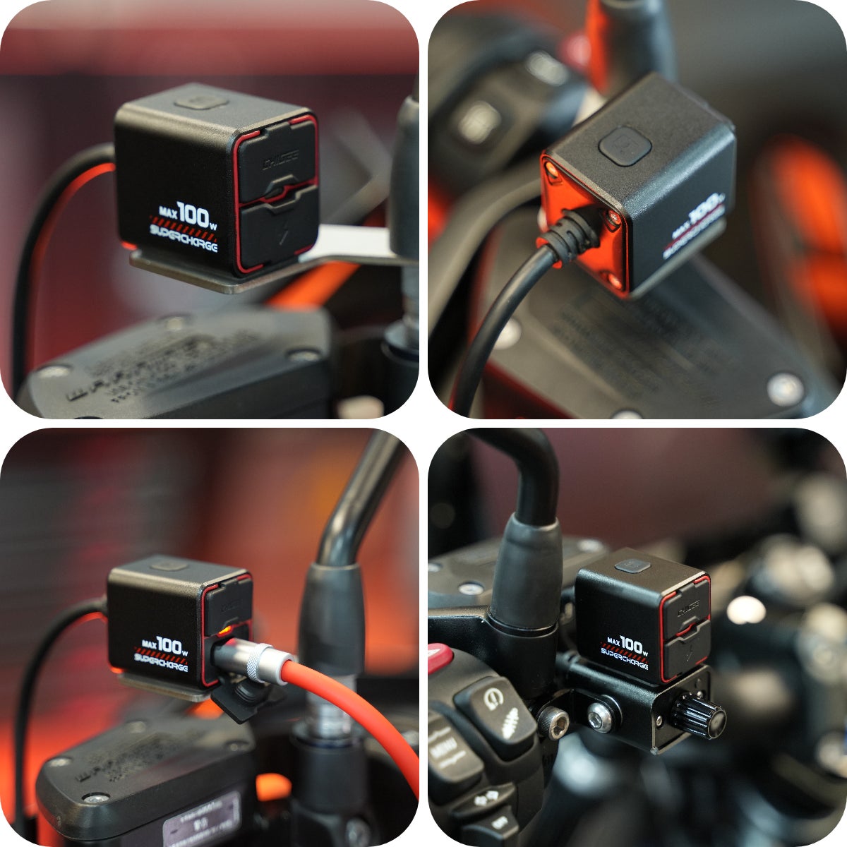 バイクの蓄電池が十分でない場合でも、USB Type-Cポートを介してモバイルバッテリーやACアダプターに接続することで、最大100Wの高速充電が可能です。わずか5〜10分で必要な電力を補充することができます!