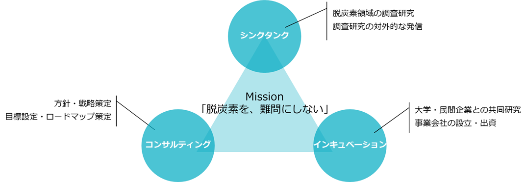 レジル総合研究所では、「脱炭素を、難問にしない」のミッションを掲げるレジルの、シンクタンク、コンサルティング、インキュベーションの3つの役割を担い、脱炭素社会の実現に向けた当社のプレゼンス向上を図ります。