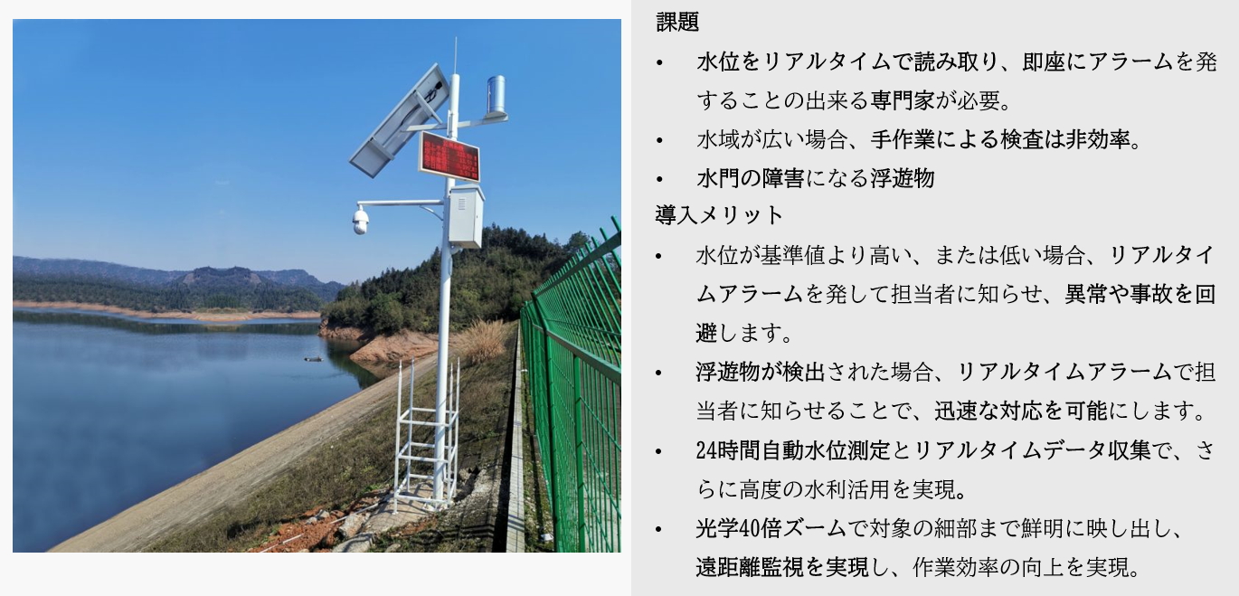 Dahua Technology Japan 合同会社(所在地:東京都中央区、 職務執行者:リー・ビン)は、線状降水帯が年々増加の傾向、集中豪雨により河川氾濫のリスクも高まっています。当社の水利モニタリング分野専用カメラは水位を監視し自動的に発報することにより、命を守ります。また水面の浮遊物を検知、不審船舶を特定し追跡するAI機能により、防災のみならず、大事な水資源を守ります。本製品は2022年12月1日より提供いたします。