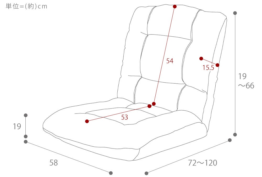 - サ イ ズ :(約)幅58cm×奥行72~120cm×高さ15.5~66cm