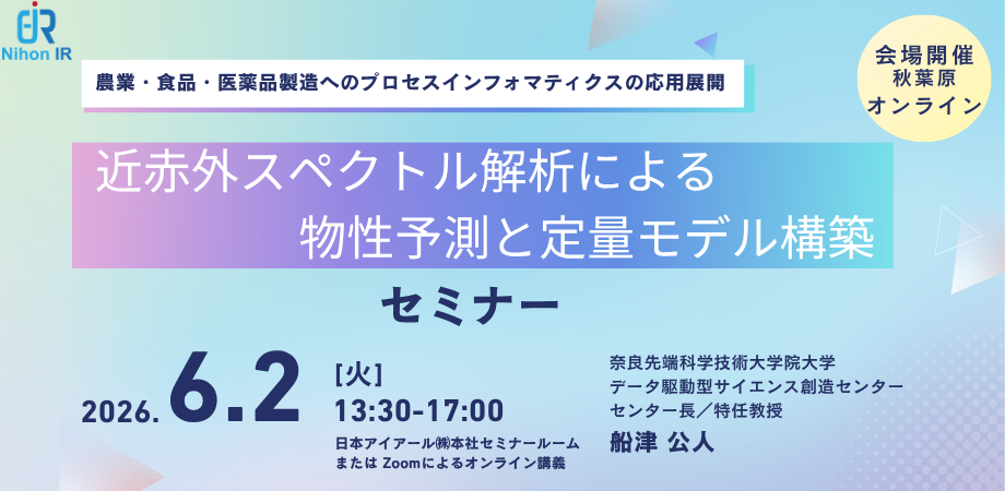 アイアール技術者教育研究所は、品質管理に欠かせない特性値・含有量の予測を、近赤外線スペクトルを活用してリアルタイム化する考え方と手順を、農業・食品・医薬品製造などの産業事例を交えながら解説する公開セミナーを開催します。
