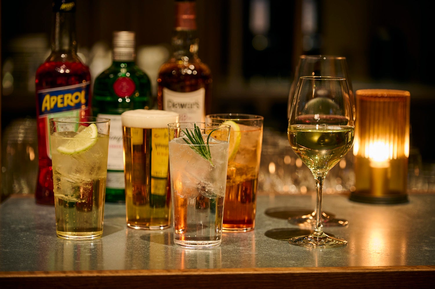 ・レイトハッピーアワー (サッポロ・黒ラベル、アペロール・ソーダ、泡・白・赤ワイン、漬け込みレモンサワー、角ハイボールが10%OFF)