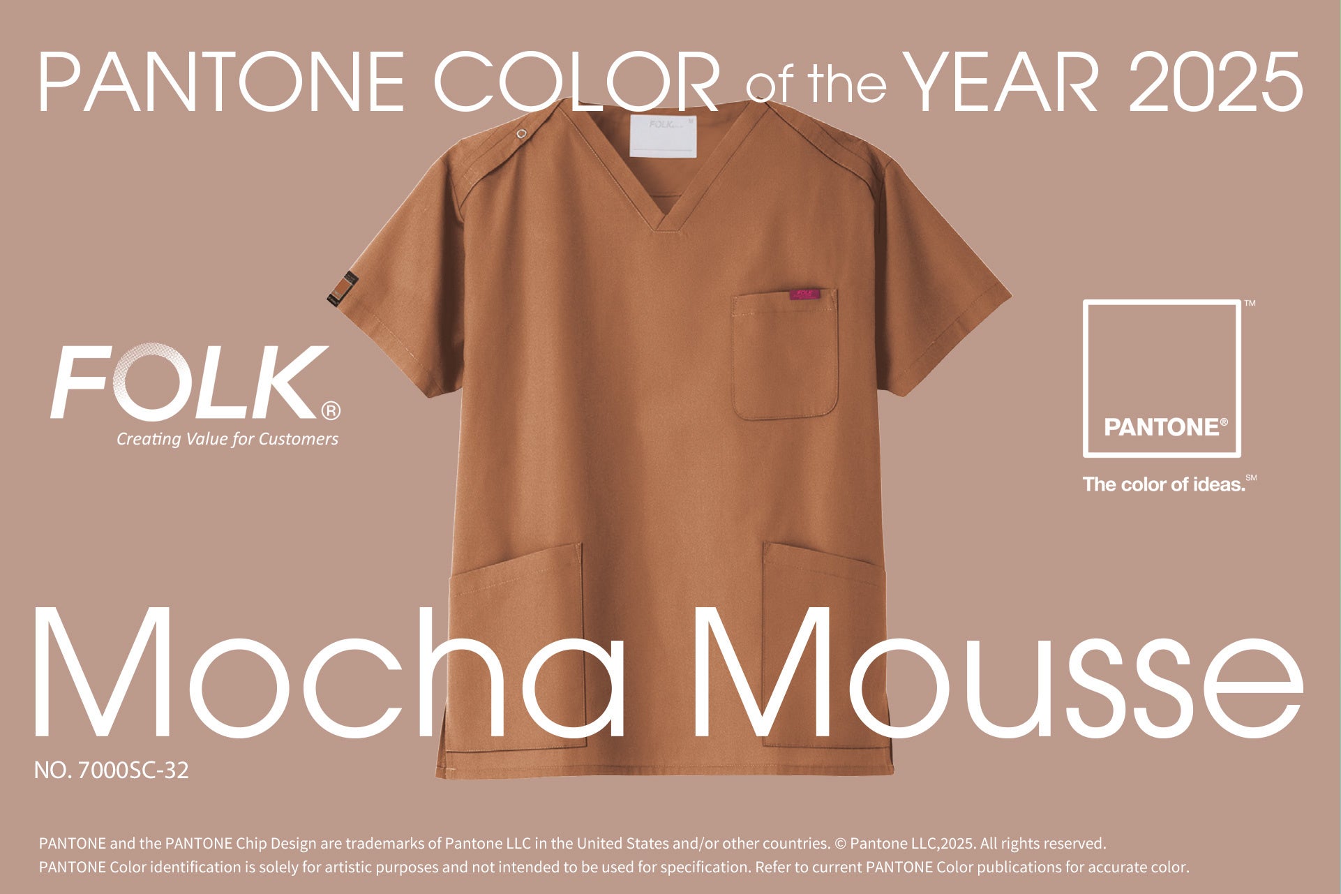 ユニフォームメーカーのフォーク株式会社(1903年創業、本部:東京都千代田区、代表取締役:小谷野淳)は、2025年1月10日、PANTONE(パントン)のスクラブ(製品品番:7000SC)の2025年度の新色として、「パントン・カラー・オブ・ザ・イヤー2025」に選ばれた「Mocha Mousse(モカムース)」を発売します。