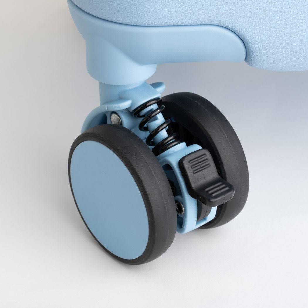 さらに『OSHINO』では、全9種(8色+透明)のフロントパネルと、8色のキャスター(各4個セット)を、来年1月頃より別売でオプション展開予定です。本体に付属するストッパー付きキャスターは、ホイール部分をボディと同色に仕上げていますが、脱着式なのでオプションとして他カラーのキャスターを購入し、自分で付け替えることも可能です。推し色で統一したり、推し同士の“ペアカラー”を楽しんだりと、自由なアレンジで自分だけの“推し活キャリー”を完成させられます。
