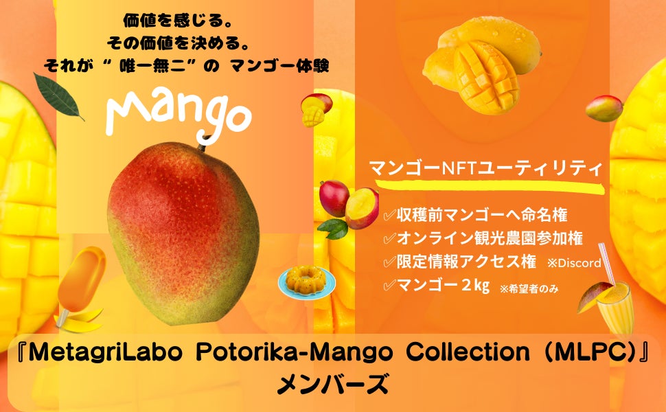 「MetagriLabo Potorika-Mango Collection (略称: MLPC)」メンバーズNFTホルダーのみなさまには、石垣島の完熟マンゴーを味わい、その価値を自身で決める特別な機会を提供します。