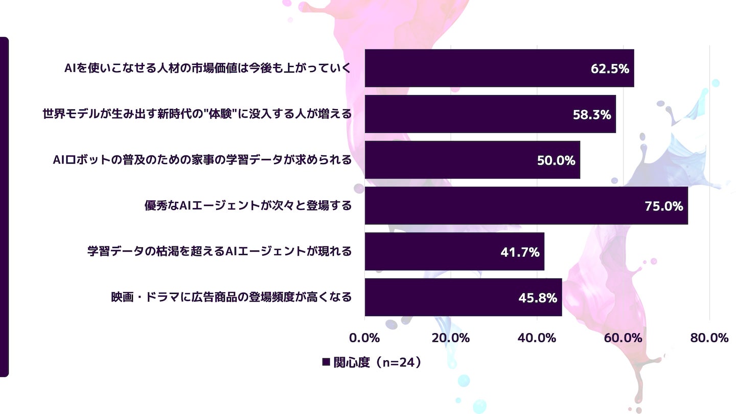株式会社リワイア(所在地:東京都港区、代表取締役:加藤 英也)は、2024年12月26日(木)にマーケティングに関わるトレンドを発表する無料セミナー「Lens of Trends」の別冊版セミナー「AI of CHANCE」を開催しました。本セミナーでは、AIに焦点を当てたトレンドについて、6つのトピックを発表いたしました。開催レポートとして、発表した6つのトピックと、セミナー聴講者のアンケート結果を共有いたします。講演資料のダウンロードのご案内もございますので、ご関心ありましたらお取り寄せください。