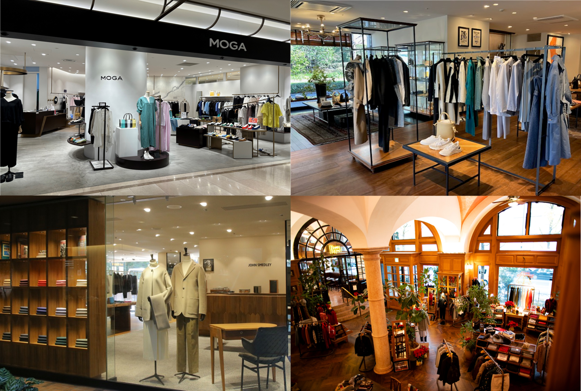 ビギホールディングス各社ブランド店舗(Papas、martinique、JOHN SMEDLEY、MOGA)
