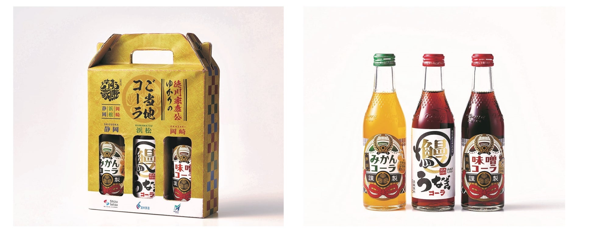 商品概要:生誕の地・岡崎(味噌コーラ)、出世の地・浜松(うなぎコーラ)、